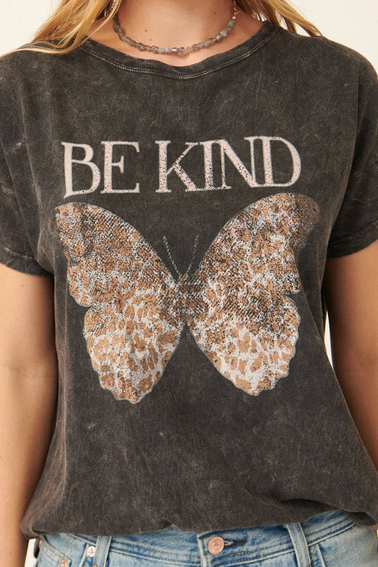 BE KIND Butterfly Mineral Washed Graphic Tee