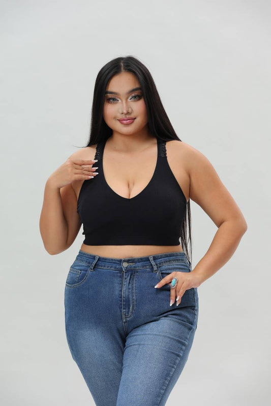 Plus - Seamless Front Lace Racerback Bralette