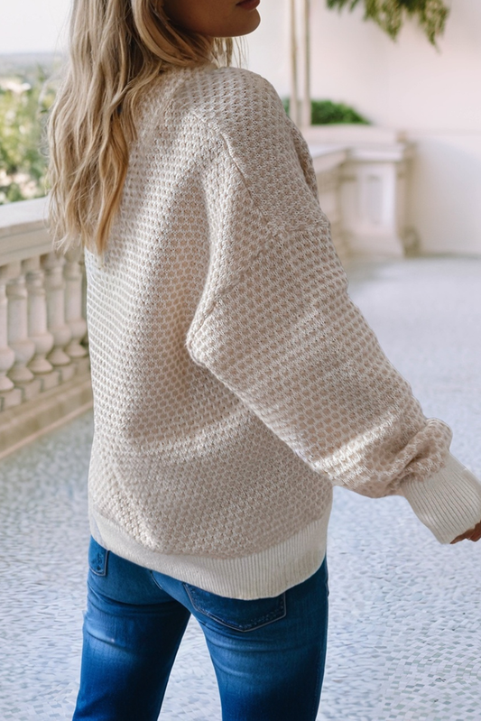 Ribbed Henley Button Drop Shoulder Sweater
