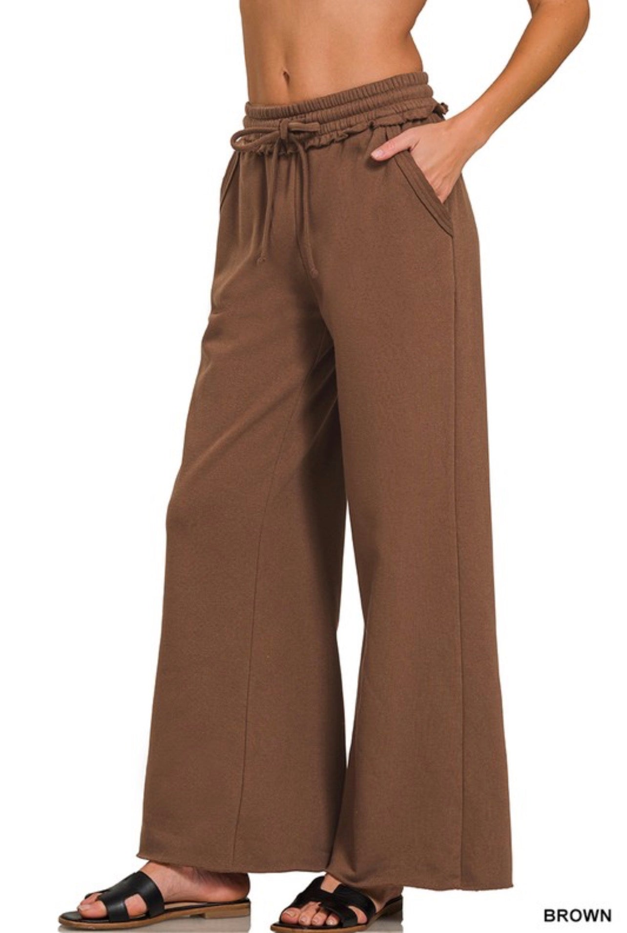 Available in 3 Colors - Cozy up in these ultra-soft fleece sweatpants wide leg that turn comfort into a style statement! The exposed seam detailing adds an edgy, modern twist to your loungewear game. Perfect for lazy days at home, running errands, or making athleisure look effortlessly cool. Pair them with your favorite oversized tee and you're ready to take on the world—or at least your couch. Comfort never looked this good!
