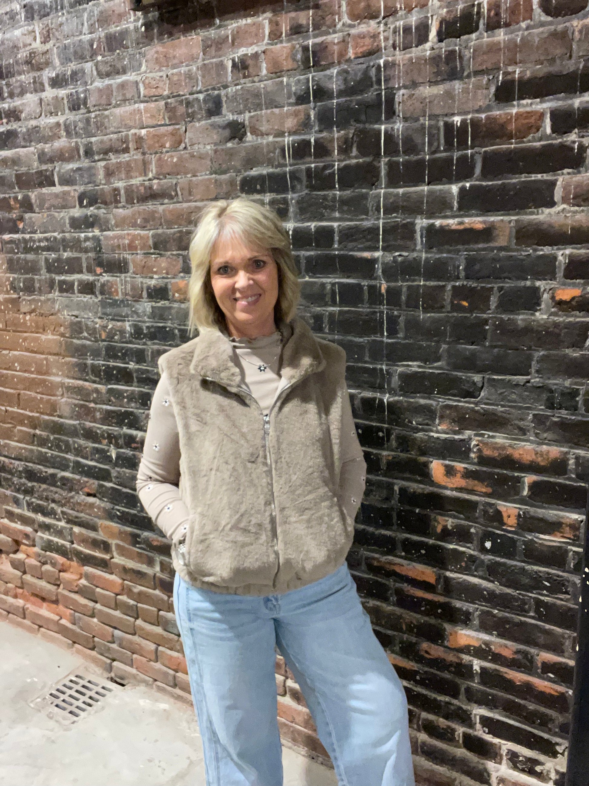 Layer up in style with the Megan Faux Fur Vest—your new go-to for instant glam! This plush, faux fur beauty adds serious texture and warmth to any outfit, whether you're dressing up for a night out or keeping cozy on casual days. The luxe feel without the guilt makes it perfect for fashion lovers who want to look fabulous and feel amazing. Slip it on over your favorite dress, tee, or sweater for that extra touch of sass and sophistication! With an elastic waist, it zips up and has pockets!