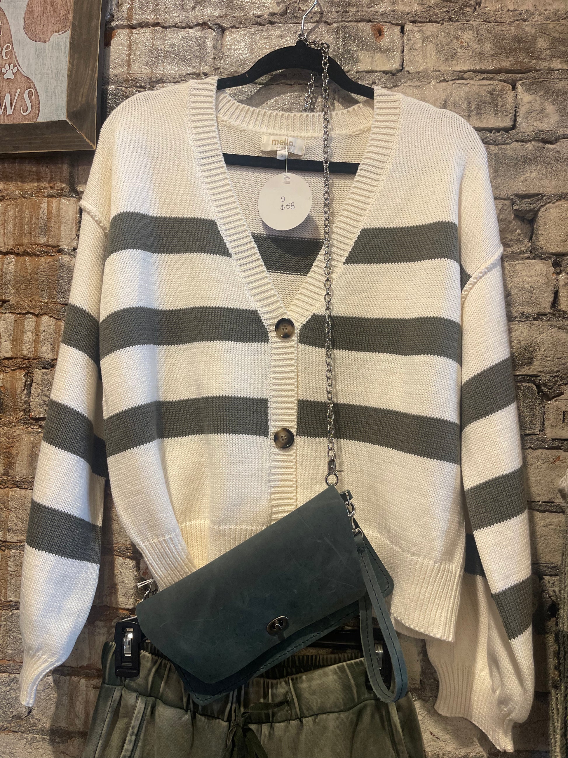 Striped V Neck Knit Cardigan Size : Small Actual product color may vary from the images shown. Every monitor or mobile display has a different capability to display colors, and every individual may see these colors differently.